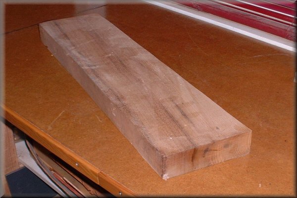 (29 July 2007) I love doing these "before" pictures. Here is a block of Oregon myrtle which i bought on eBay a couple of years ago. Originally it was going to be used for a crumhorn project, since it's apparently farily easy to bend. That project didn't end up happening, and i think this wood will make a pretty säckpipa... |